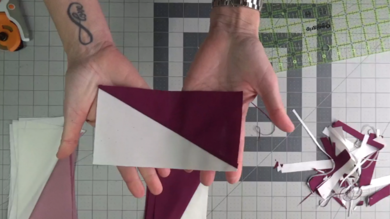 In Week 7 of the Skill Builder Quilt Along, we’re making half-rectangle triangles two at a time. If you’ve been following along, you already have the foundational skills to tackle this one. And if you’re new here, this is a wonderful technique to add to your repertoire.