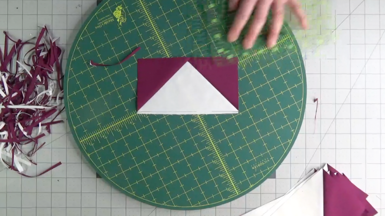 Protect your points. When you trim your unit, make sure there’s a quarter inch between the top of the point and the edge of your ruler for the seam allowance. This protects the point when the unit gets sewn into a block later.